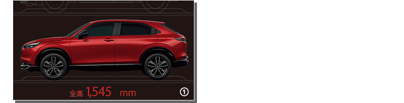 ※1:すべての立体駐車場に入庫可能とは限りません。また車両の状態により、表示上では入庫可能な駐車場でも、車高検知センサーによる警告や車高制限バーへの干渉で入庫できない場合などがあります。入庫の際には必ずご確認ください。 ※2:e:HEV Zとの比較。数値はHonda測定値。※3:2025年10月時点。Honda調べ。